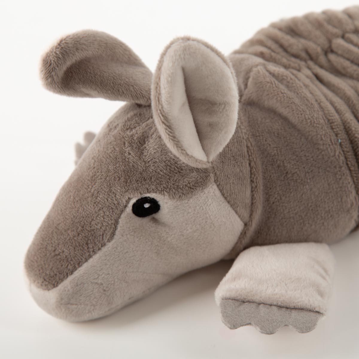 Mit einer Länge von ca. 43 cm und einem Gewicht von rund 700 g liegt das Gürteltier angenehm auf Schultern, Bauch oder Rücken und wird schnell zum festen Begleiter im Alltag.
