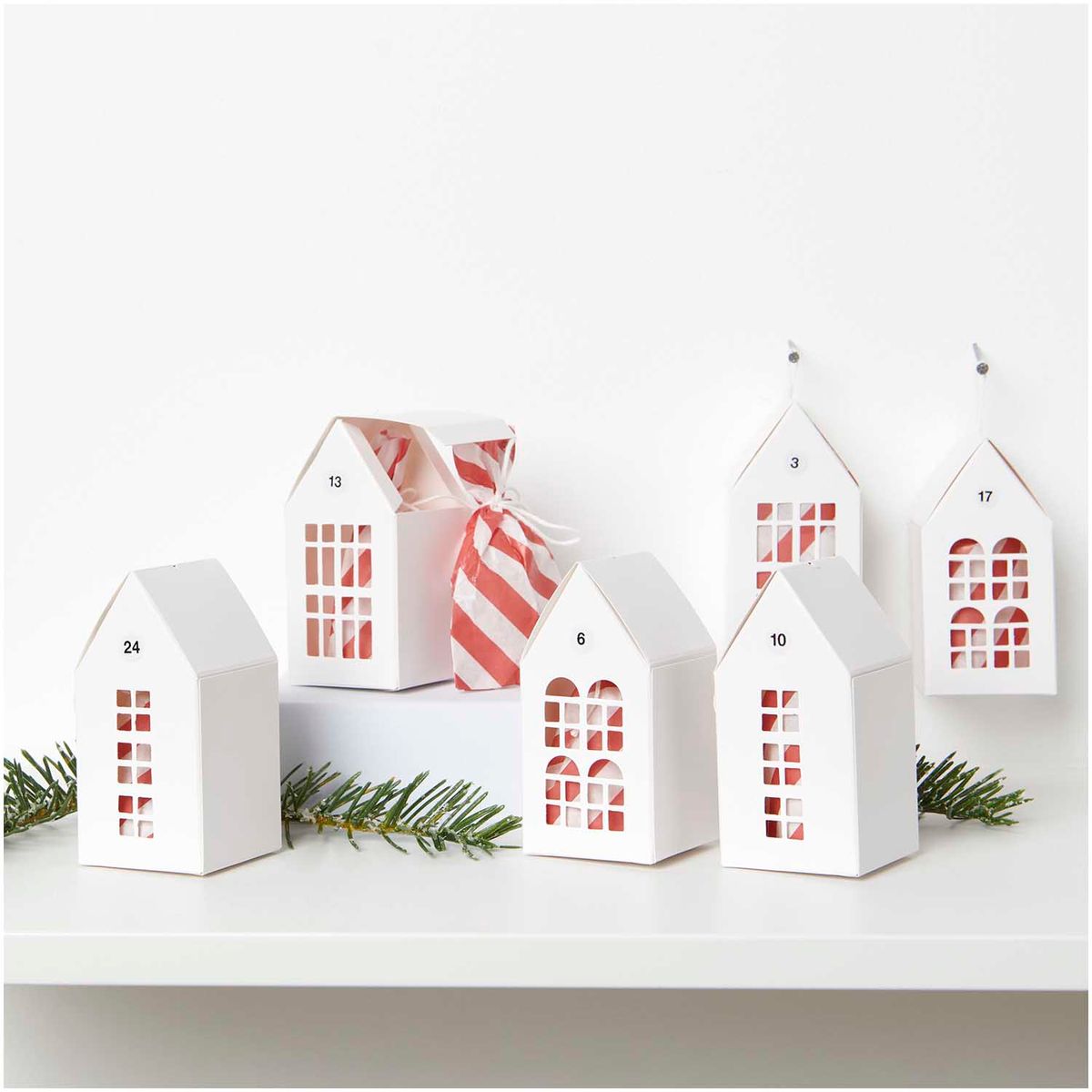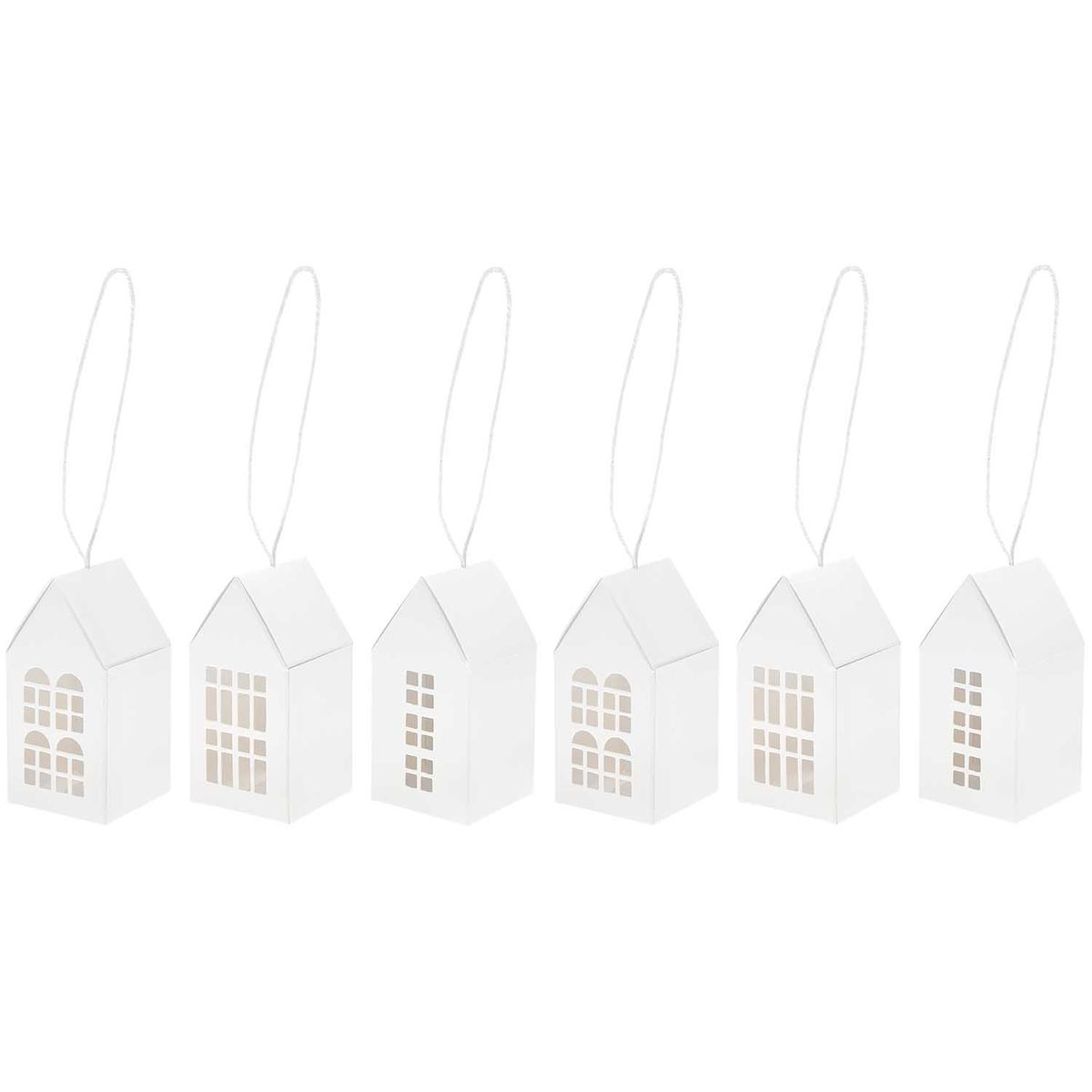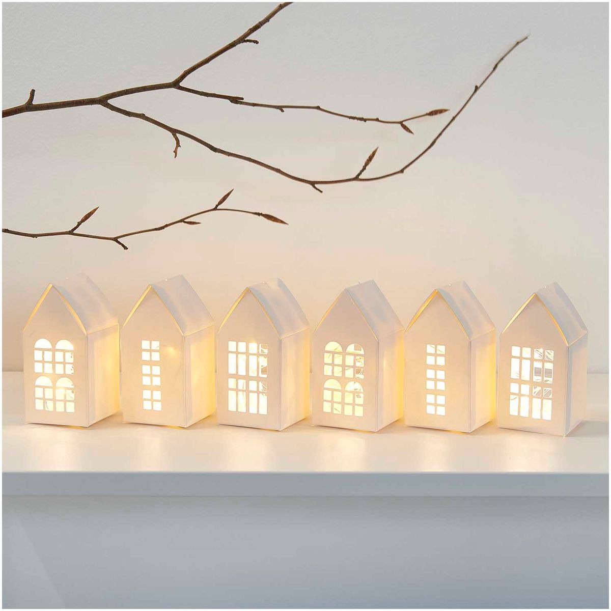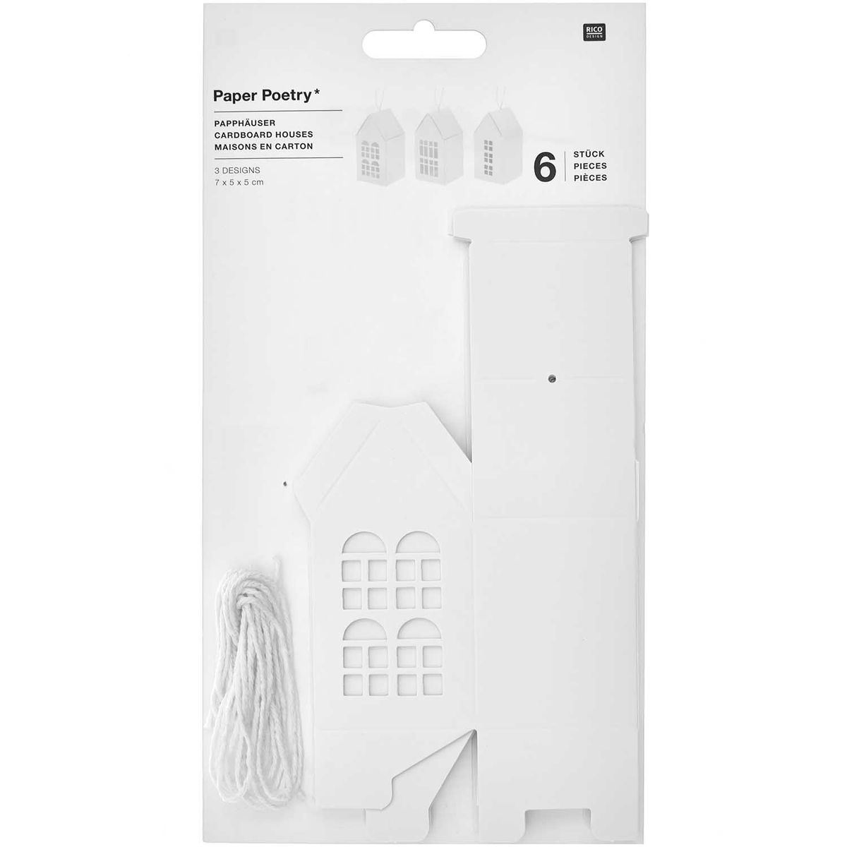 Rico Design Papphäuser Set vorgestanzt zum Hinstellen oder Aufhängen weiß 6 Stück
