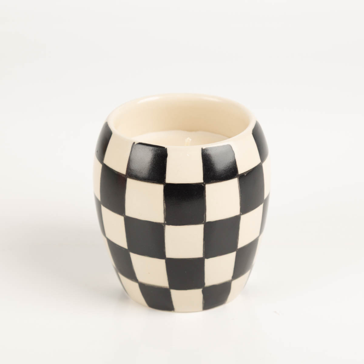 Die Duftkerze Checkmate von Paddywax interpretiert den klassischen Checkerboard-Print modern und stilvoll. Der handbemalte Keramiktopf in black wirkt elegant, ruhig und ausdrucksstark. Jede Kerze ist ein Unikat und setzt ein klares Designstatement in deinem Wohnraum.