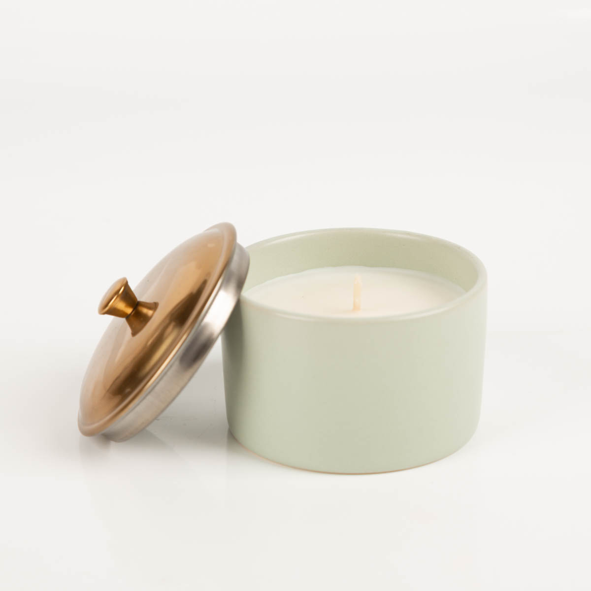 Sojaduftkerze im salbeigrünen Keramiktopf