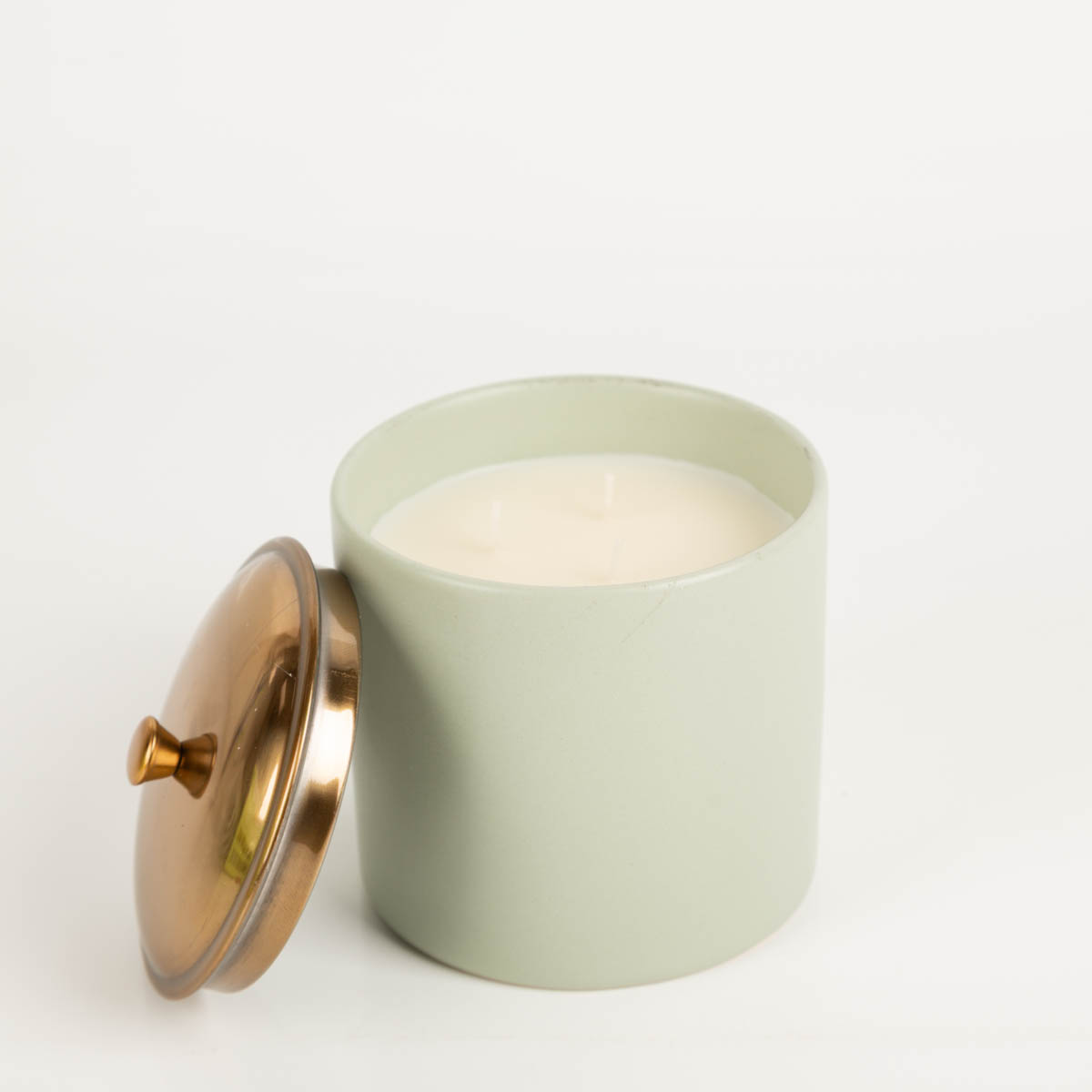 Große Sojaduftkerze im salbeigrünen Keramiktopf