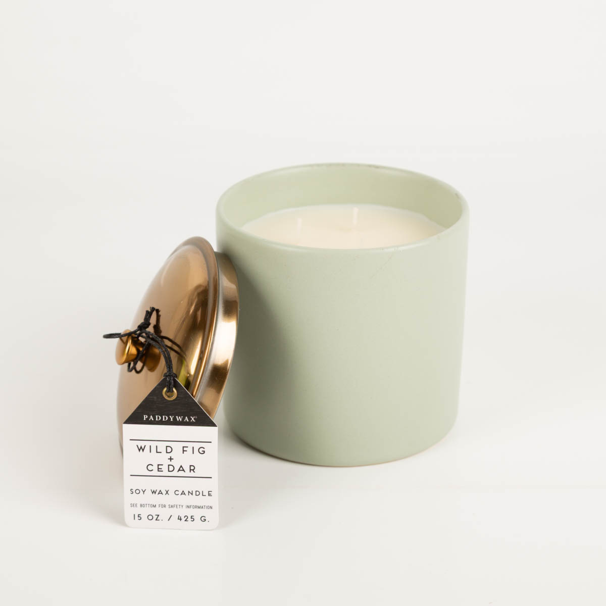 | Sonstige Details | Duftkerze von Paddywax in Keramiktopf mit Metalldeckel |